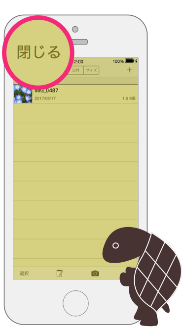 ページを閉じるには, 左上の「閉じる」ボタンをタップします.