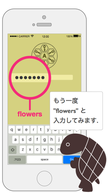 キーとは, いくつかの文字の連続です. 半角英数字と記号が使えます. キーはパスワードに似ています.