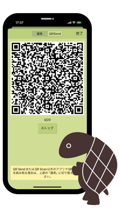 「QR Send」で生成されたQRコードは, 他のQRコードリーダーアプリでは読み取れない場合があります.