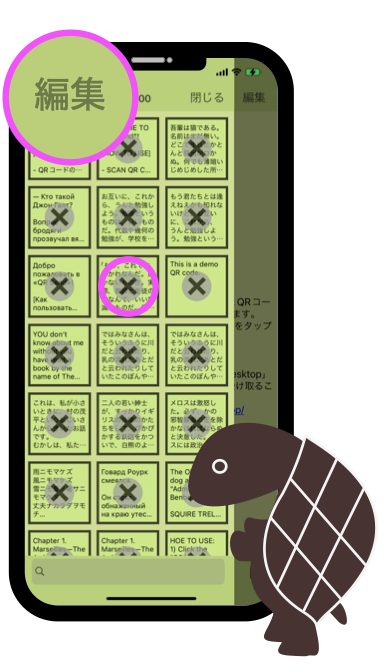 不要なテキストを履歴から削除するには, 「編集」ボタンをタップしたあとに「×」マークをタップします.