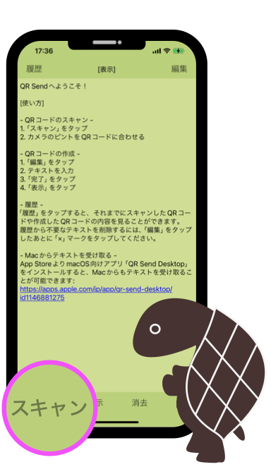 QRコードを読み取るには「スキャン」ボタンをタップします.