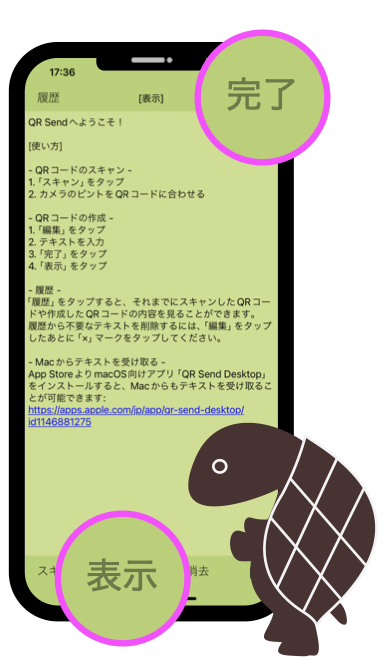 テキストの入力が完了したら「完了」をタップし, そのあと「表示」をタップします.