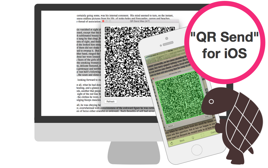 "QR Send Desktop" helps you to transfer text using QR codes from Mac to iPhone/iPad.