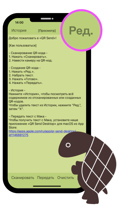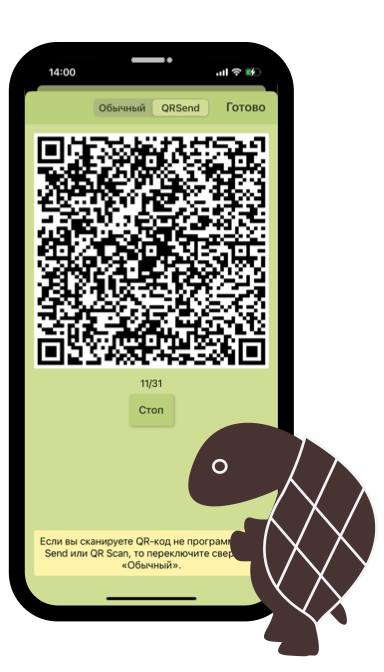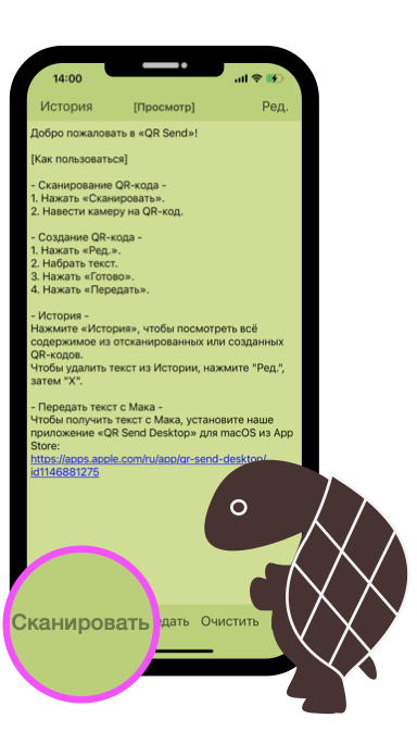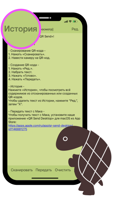 "QR Send" читает и создаёт QR-коды. Вы можете просто и безопасно обмениваться информацией между устройствами, используя его.