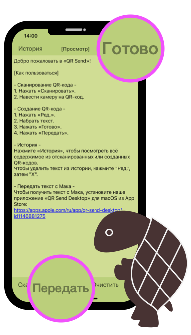 Используйте наше приложение "QR Send Desktop" для macOS, чтобы передать текст с Мака на iPhone или iPad.